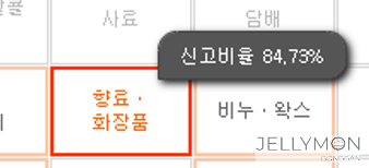 61%이상 신고된 향료 화장품에 마우스를 대면 신고비율이 뜹니다. 84.73%네요. 클릭해주세요.